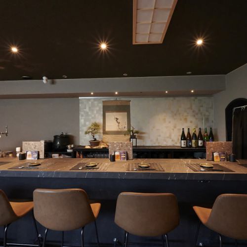 【大人の雰囲気が漂う落ち着いた空間】シックで高級感のある内装は、大人のデートや特別な記念日にぴったりです。カウンター席でのんびりと食事を楽しんだり、テーブル席で会話を弾ませたり、様々なシーンでご利用いただけます。